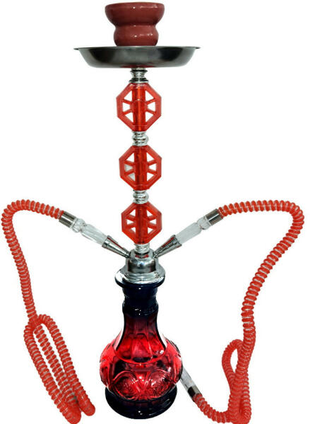 55 cm magas, vízipipa test anyaga rozsdamentes fém. Tartály és a test csatlakozása bedugós. Víztartály anyaga üveg. 2 szívócső tartozik a vízipipához. Kerámiája hagyományos tipusú.