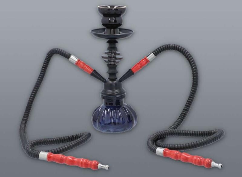 Fekete színű, 2 csöves, 27 cm magas shisha víztartállyal.  A más néven vízipipának nevezett dohányzószerszám segítségével a tűztányéron elégetett dohány füstjét átengedik a vízen, ...