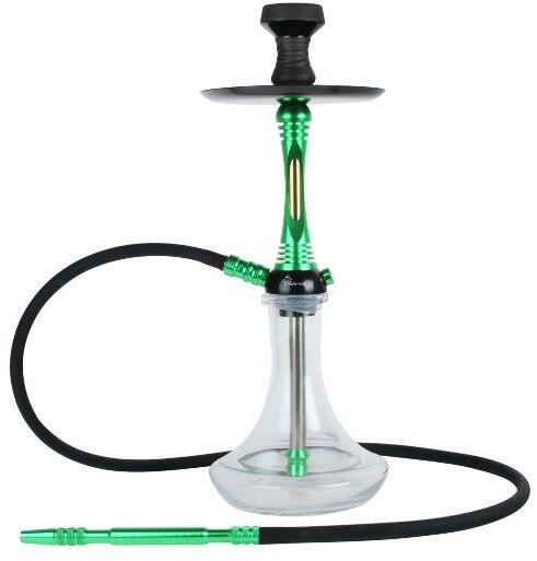 Shark márkájú, zöld színű shisha, átlátszó víztartállyal és fekete zsívócsővel, 55 cm magas. A vízipipához egy szívócsövet lehet csatlakoztatni. A középső rész ...